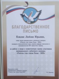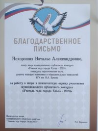 Новости Благодарственными письмами за работу в жюри и компетентную оценку участников публичного конкурса "Учитель года города Ельца-2023" отмечены доцент Комлик Л. Ю. , доцент Нехороших Н.А. Опубликовано: 4 марта 2023 << Вернуться на предыдущую страницу